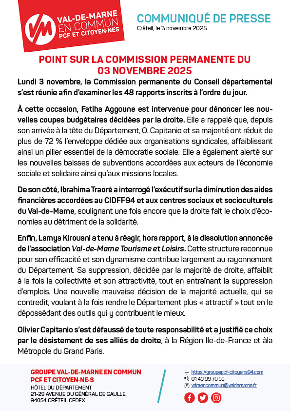 POINT SUR LA COMMISSION PERMANENTE DU 03 NOVEMBRE 2025