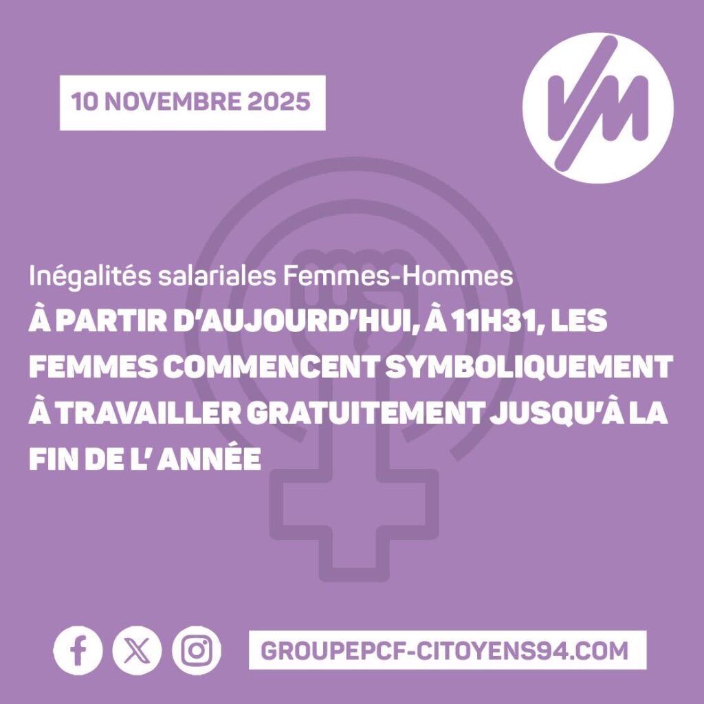 10 NOVEMBRE 2025 : A PARTIR DE 11H31, LES FEMMES COMMENCENT SYMBOLIQUEMENT À TRAVAILLER GRATUITEMENT JUSQU’À LA FIN DE L’ANNÉE