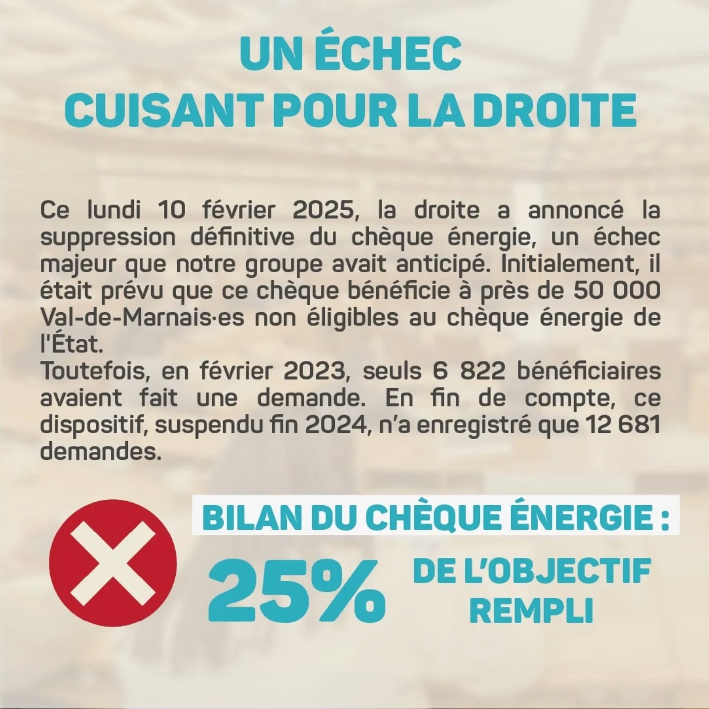 Ce lundi 10 février, la droite départementale a décidé de mettre fin au chèque énergie. Présentée comme une mesure phare de solidarité, cette aide s’est révélée être un échec pour la majorité actuelle.