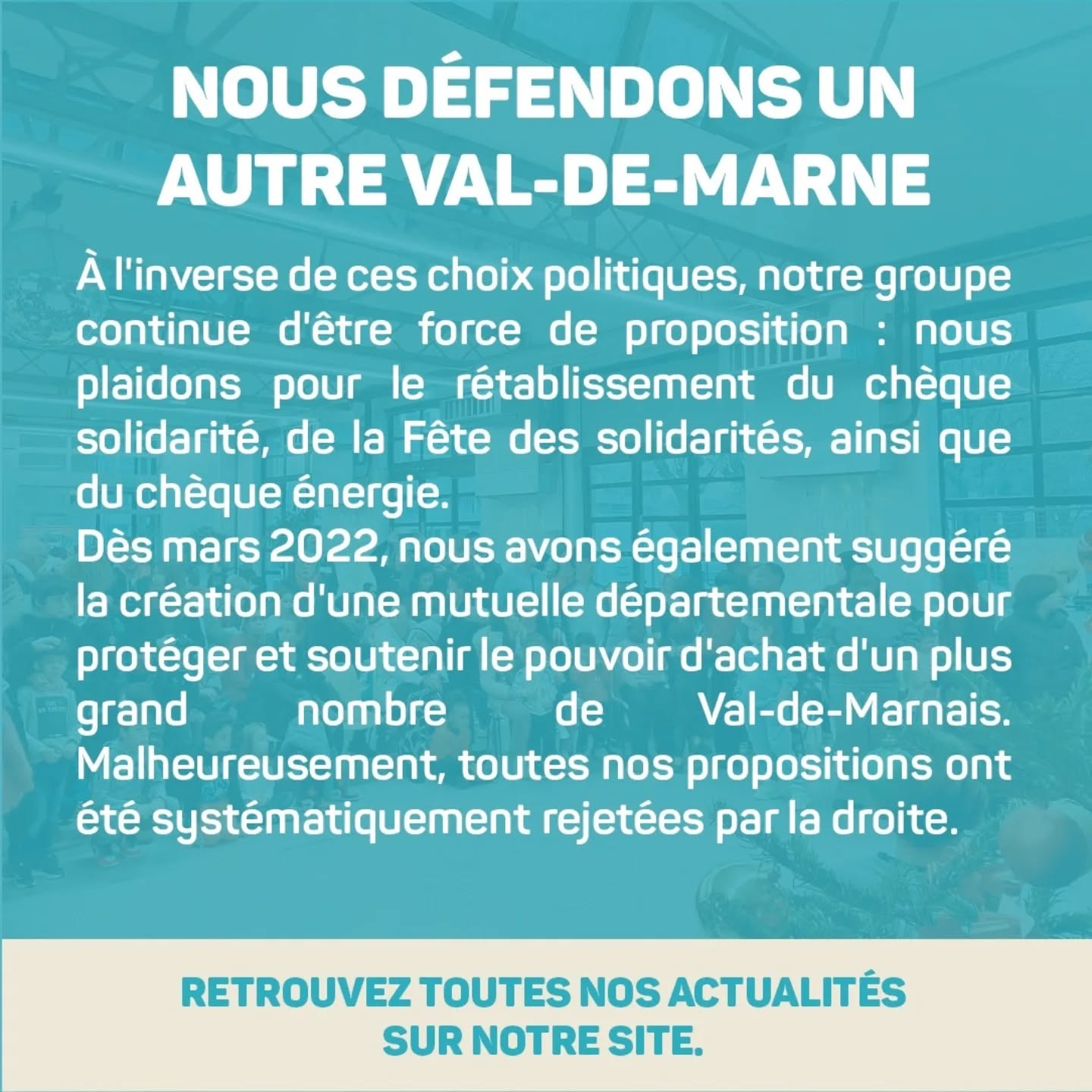 Face à cet abandon de la solidarité, notre groupe reste mobilisé pour qu’elle redevienne une valeur fondamentale de notre Département !