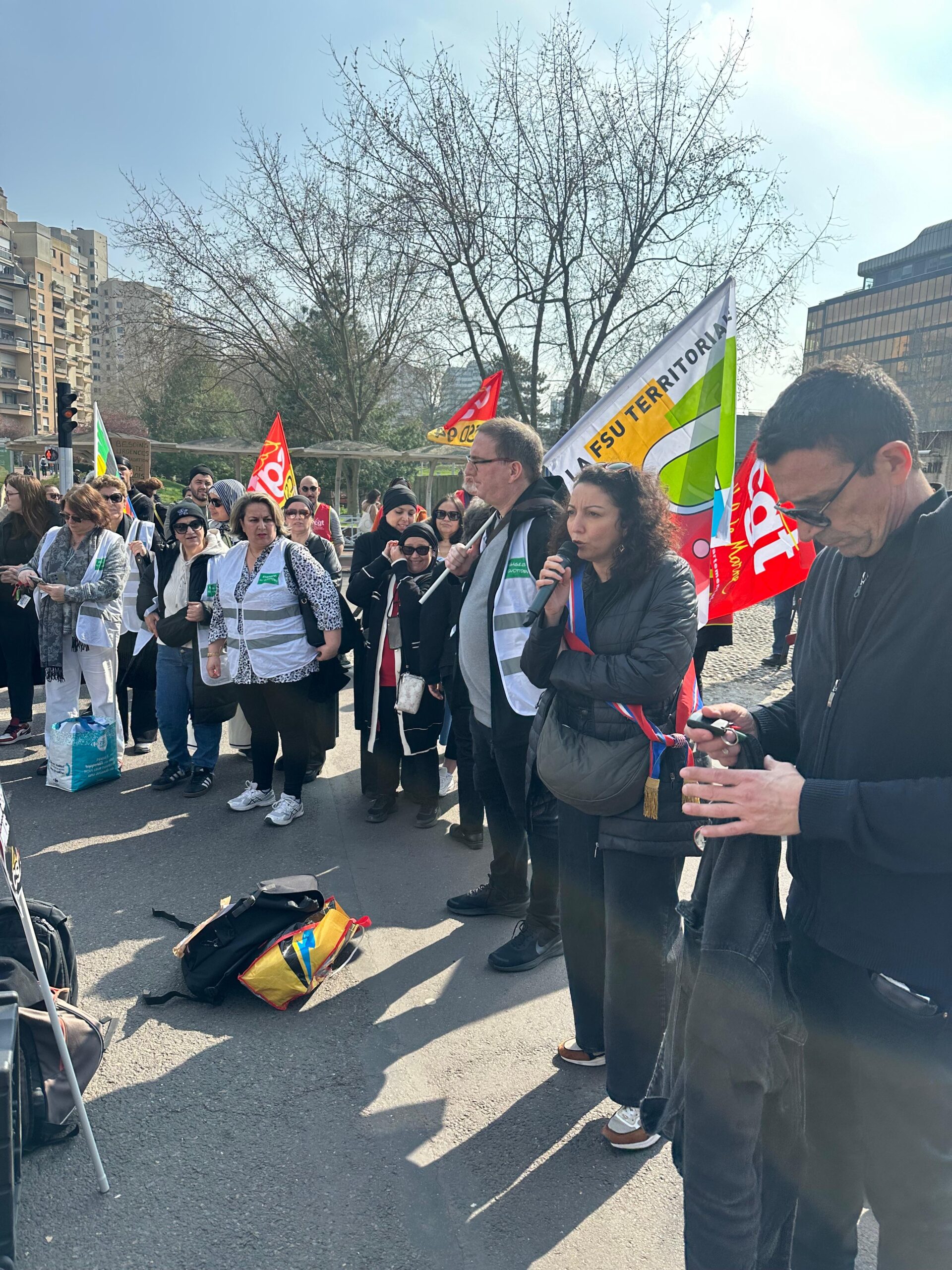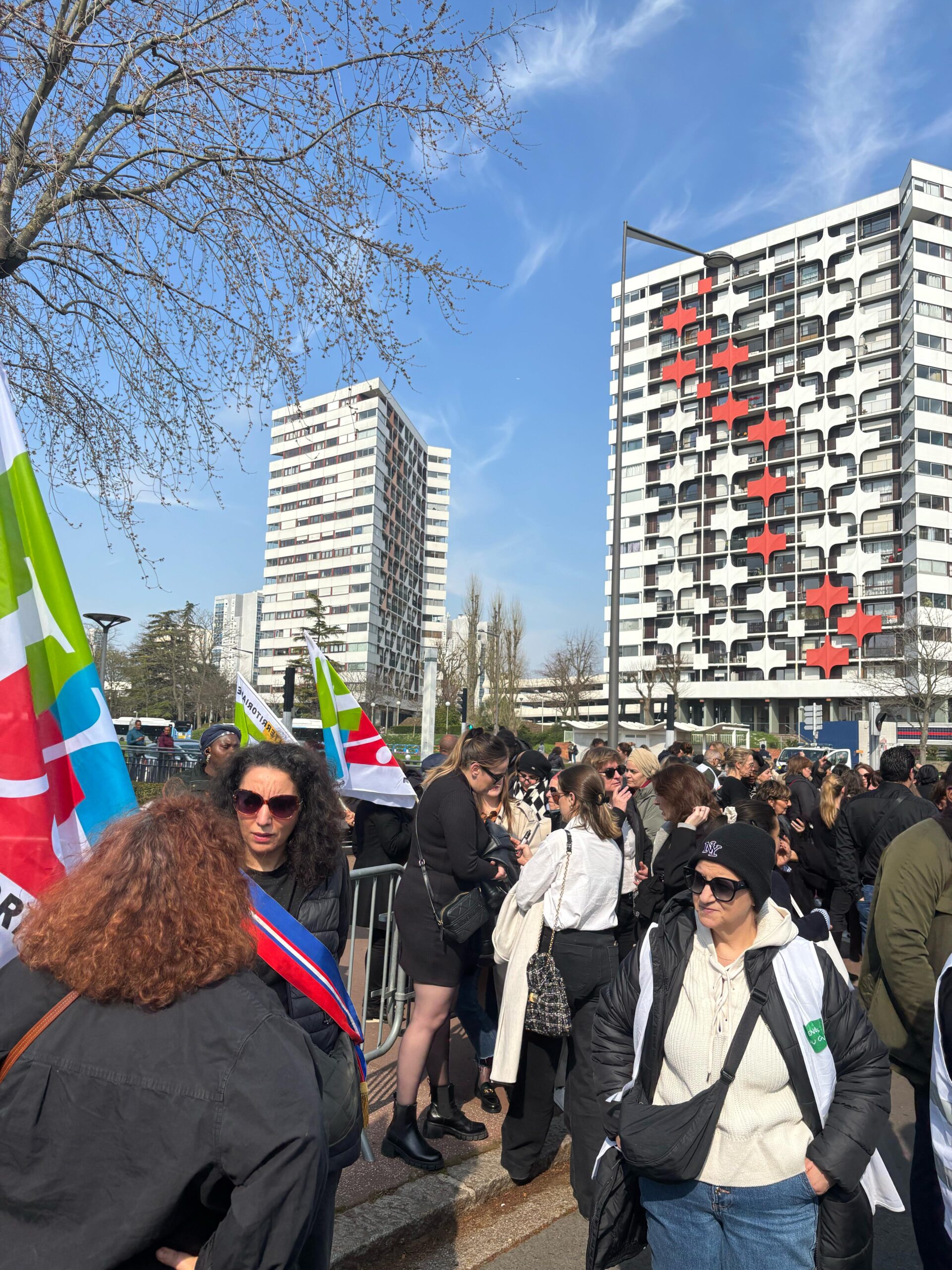 Aujourd’hui, des centaines d’agent•es des Espaces Départementaux des Solidarités se mobilisent devant l’Hôtel du Département pour exiger plus de moyens face à une crise sans précédent. Fatiha Aggoune était présente pour soutenir les agent•es.