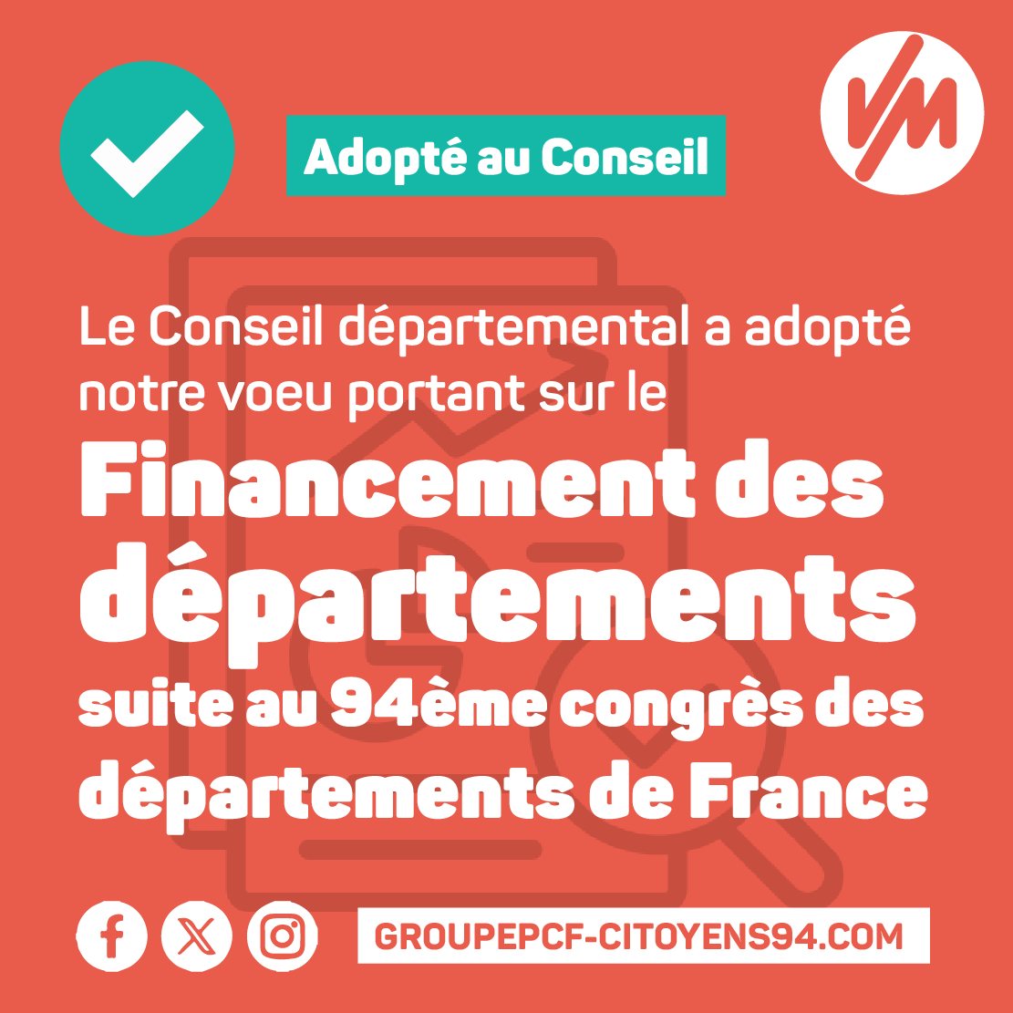 VOEU RELATIF AU FINANCEMENT DES DÉPARTEMENTS, SUITE AU 94ÈME CONGRÈS DES DÉPARTEMENTS DE FRANCE